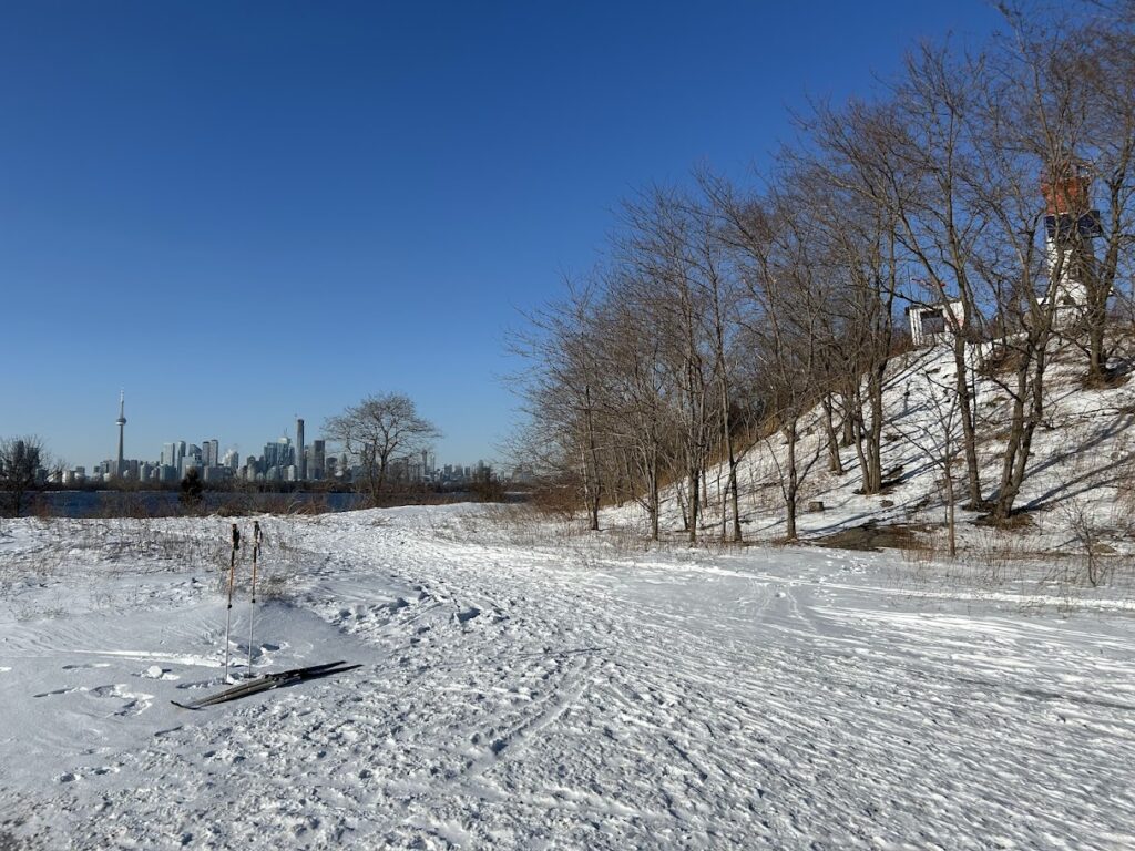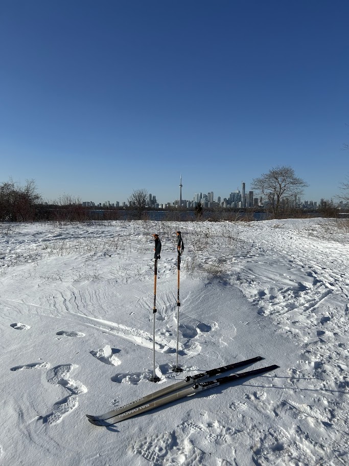 After about an hour of skiing, I finally arrived at the end of the spit where I took a quick break as I took in the views of Lake Ontario and the Toronto skyline. The view was spectacular, but I could feel the cold creeping into my outer layers so it wasn’t long before I was skiing back to the parking lot.