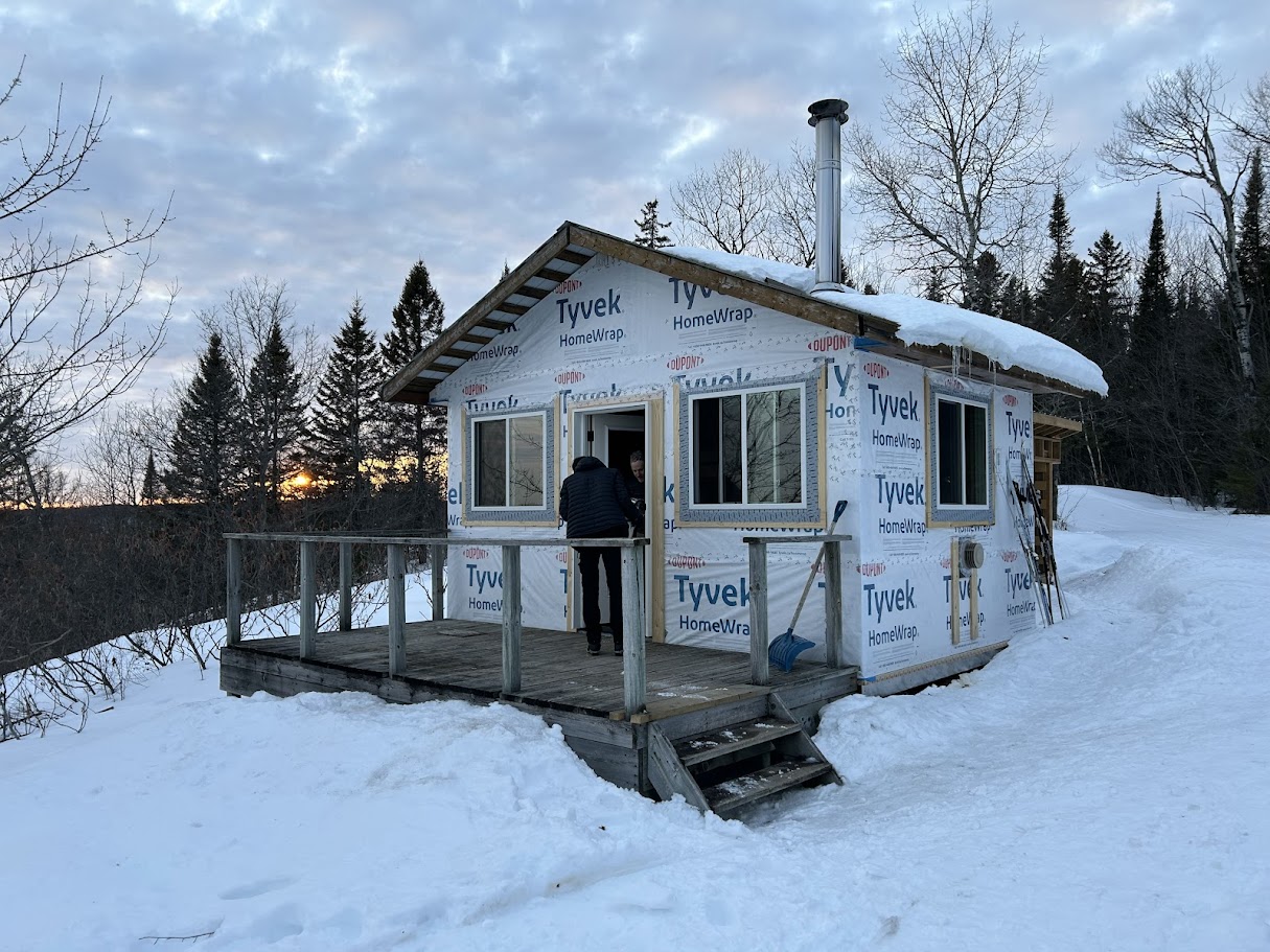 The Tyvek covered cabin